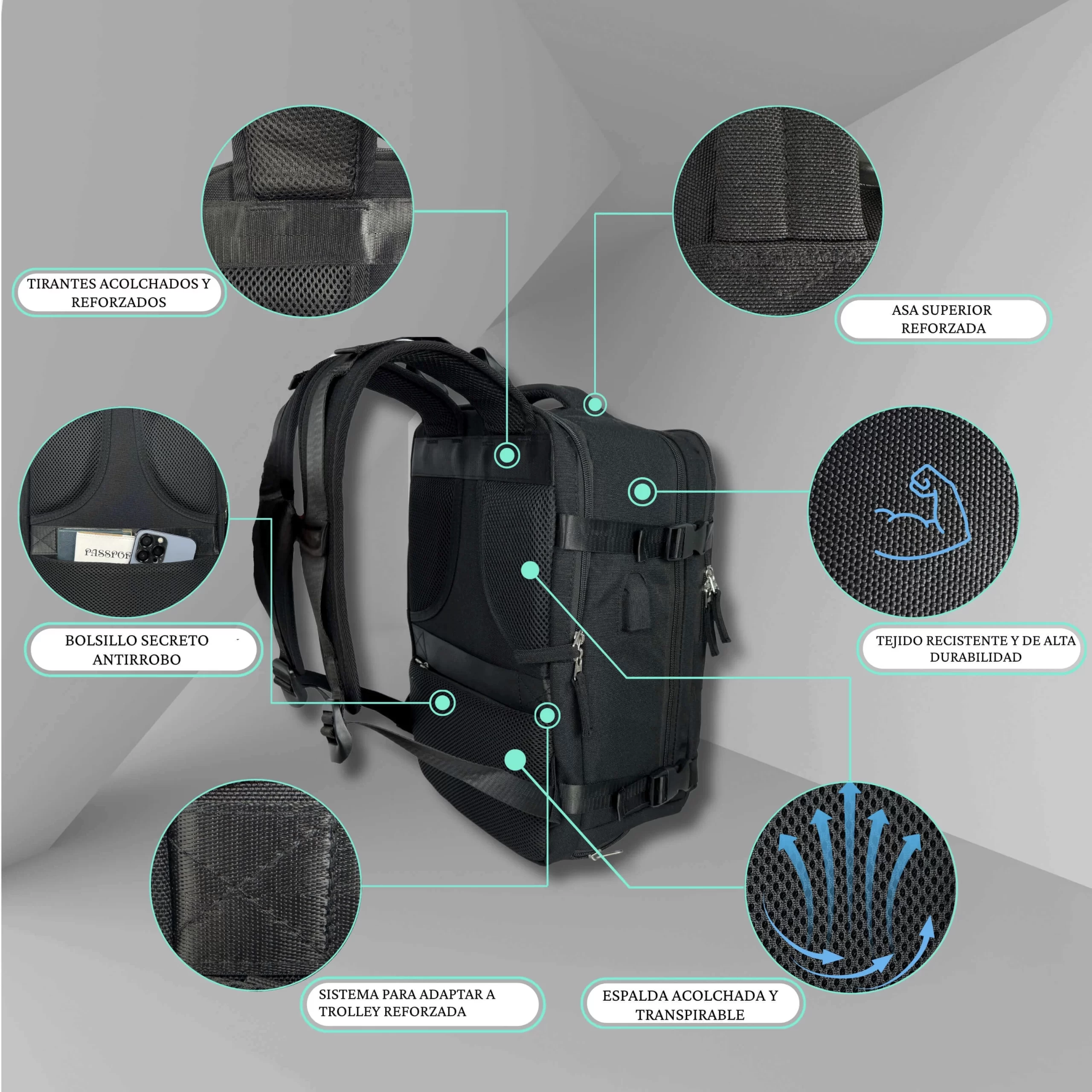Kelioninė kuprinė 40×25×20 Juoda – nemokamas bagažas – praktiškas sprendimas keleiviams, norintiems keliauti patogiai ir be papildomų mokesčių. Dydis atitinka oro linijų nemokamo rankinio bagažo reikalavimus ir telpa po sėdyne, todėl galite keliauti su visais būtinais daiktais net be registruoto bagažo. Ši rankinis bagažas kuprinė pagaminta iš patvaraus, vandeniui atsparaus Oxford 900D audinio, su TSA spynelė ir patvariais SBS užtrauktukais. Ortopedinė, kvėpuojanti nugarėlė bei paminkštintos petnešos užtikrina komfortą visos kelionės metu.